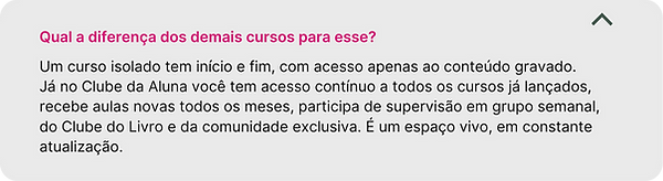 Eu sei, eu também já passei por isso. E é por isso que eu criei o Clube da Aluna. Para oferecer para você exatamente tudo aquilo que me faltou ao longo da minha trajetória.